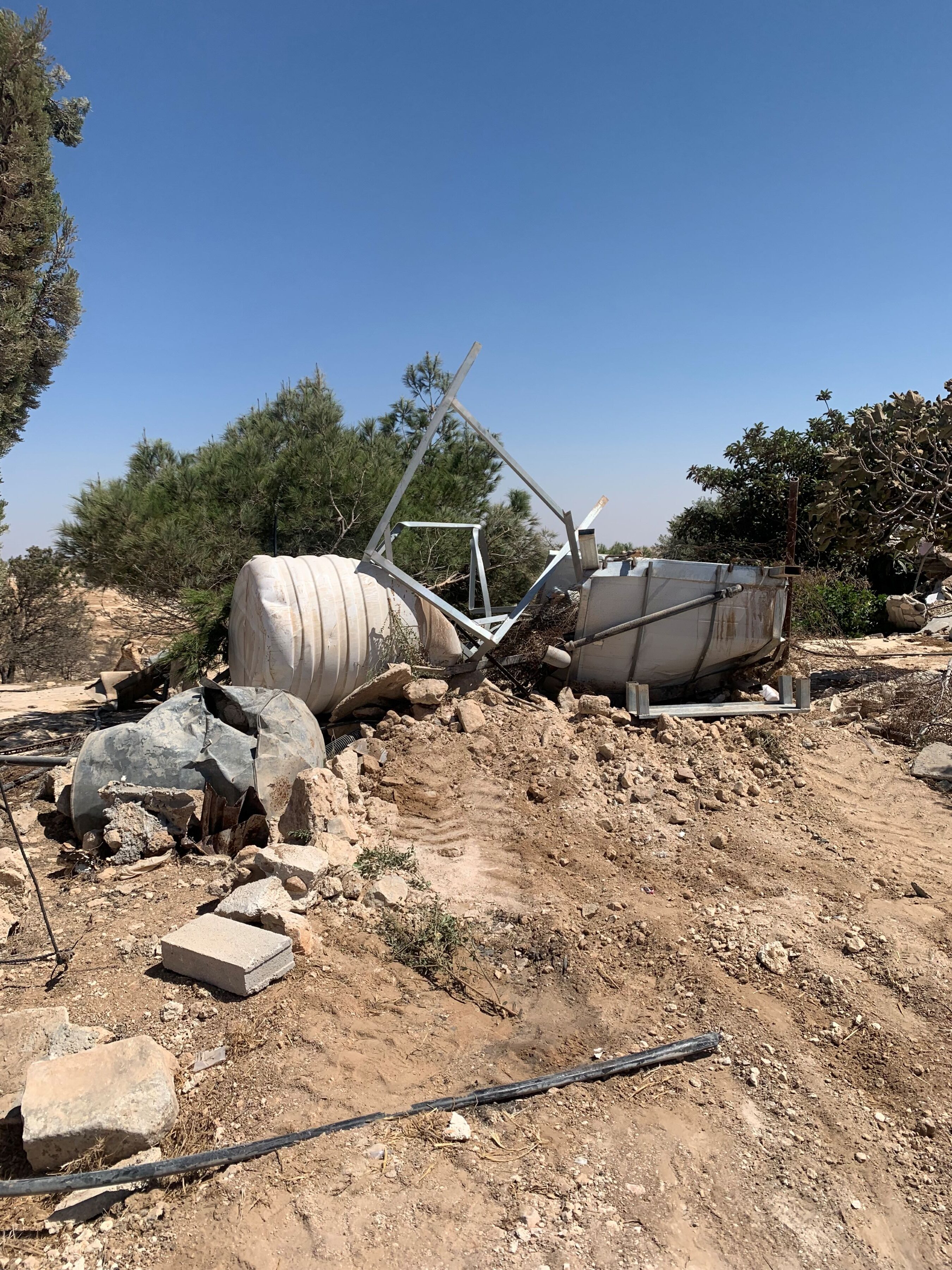 By the time we arrive, it’s too late. The water cisterns are smashed. Every toilet facility is destroyed. The tents used for shelter lie in ruins. The caves used as shelter, have been filled with rubble. The last remaining building has been reduced to ruins. Twenty-four families are left with nothing. Again.