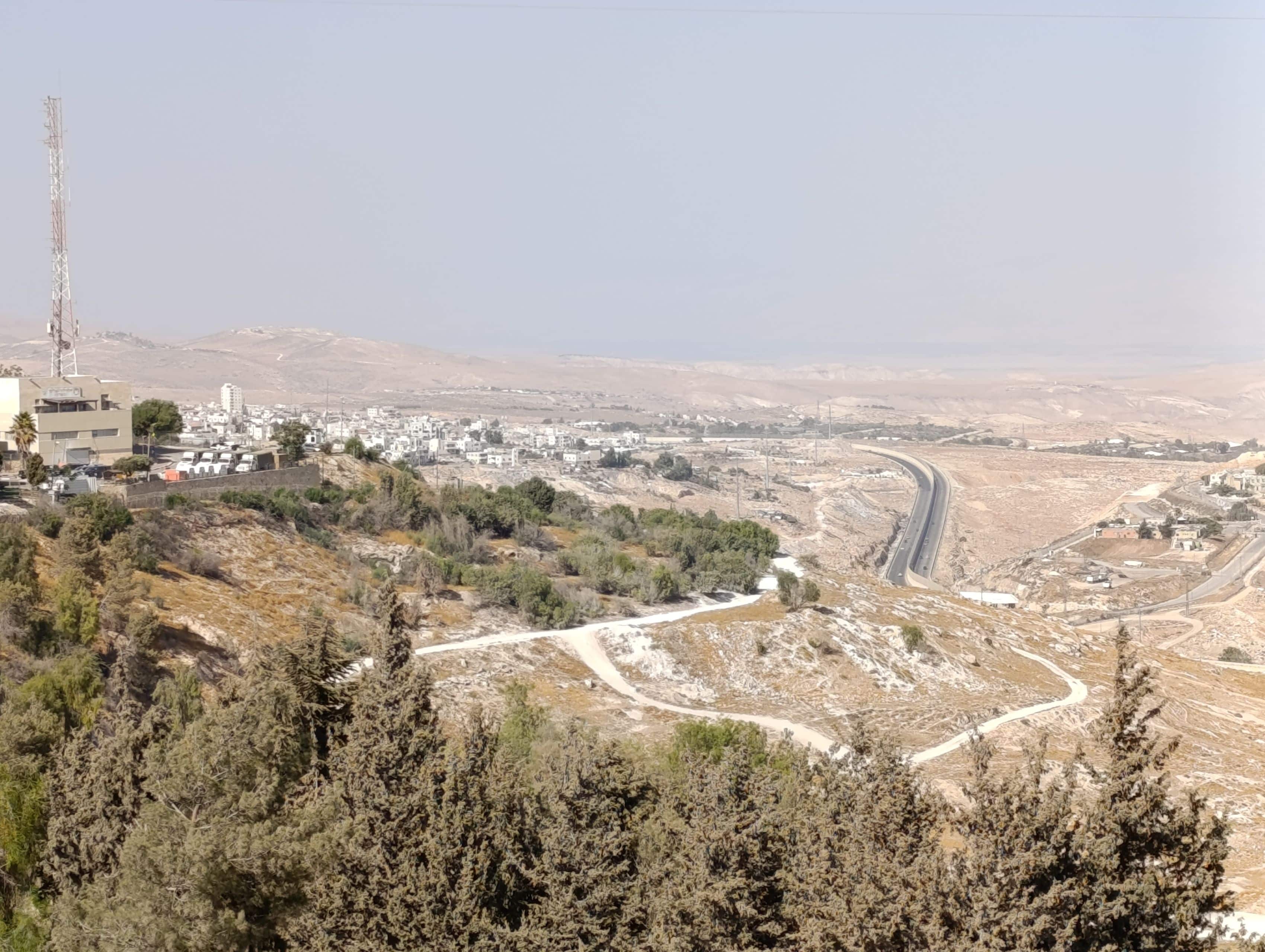 View of Khan al–Ahmar village from the illegal settlements on the hilltop