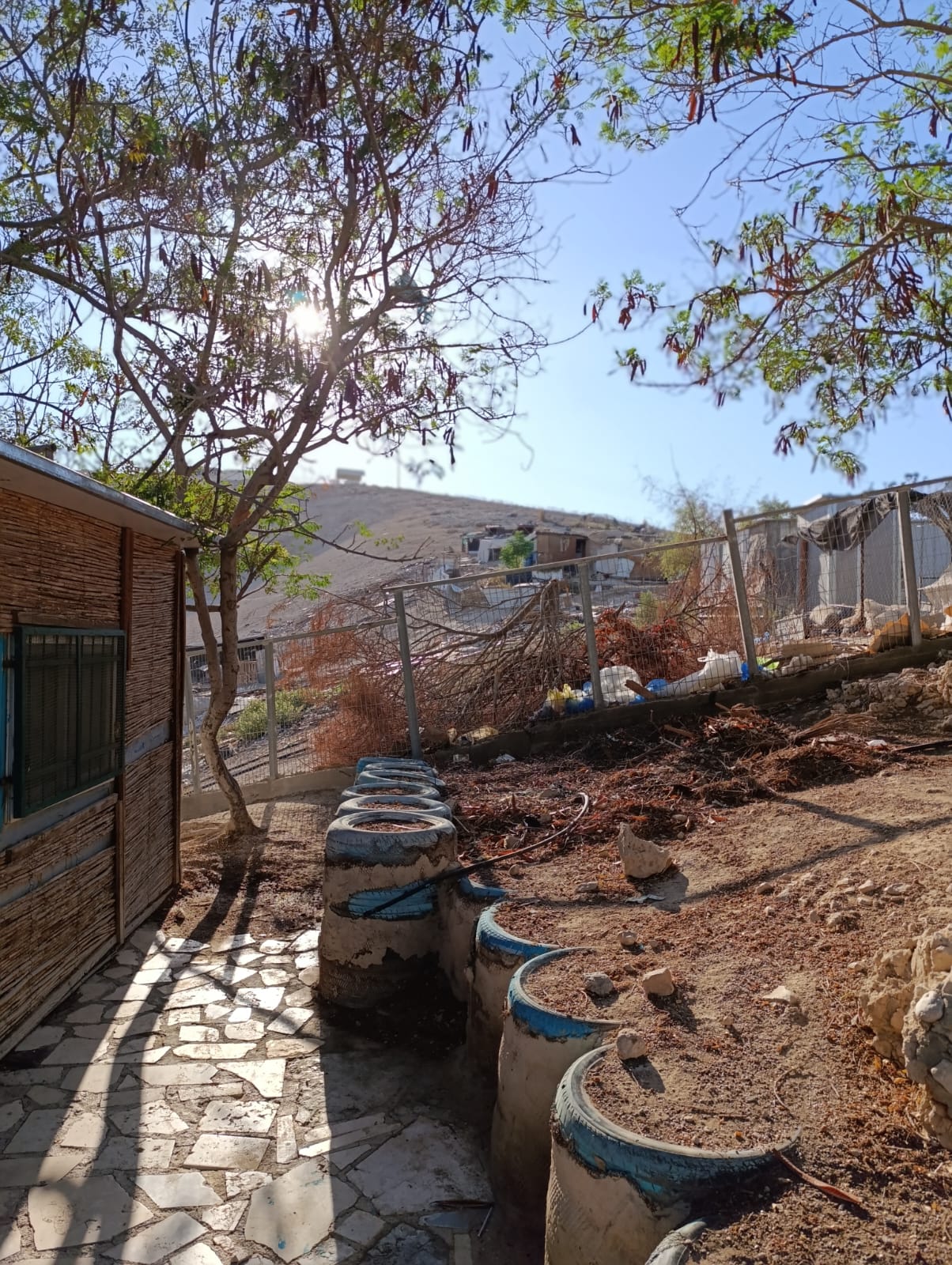 In Khan al‑Ahmar, those “facts on the ground” are visible everywhere. Bulldozers are working day and night. Every home and structure carries a demolition order dating back to 2017. Even the primary school, built with EU support and serving 180 children, is under threat. To avoid immediate demolition orders, the school was constructed using tyres and compacted earth mixed with sheep dung, materials not classified as permanent structures under Israeli planning regulations. It is the only safe route to education for children who would otherwise cross highways under the watch of nearby settlers.